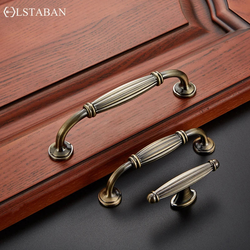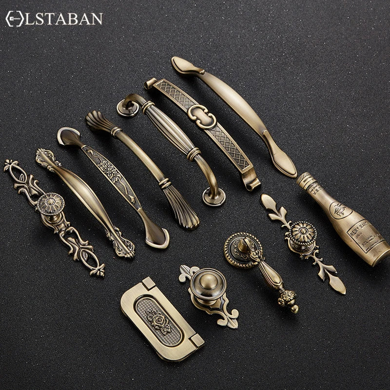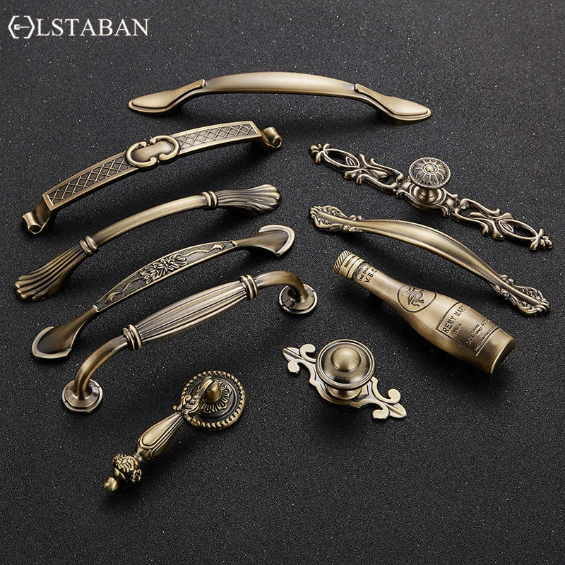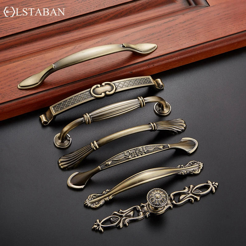 LSTABAN European Antique Door Handle Drawer Zinc Alloy Simple Wardrobe Furniture Accessories Ancient Green Cabinet Handle