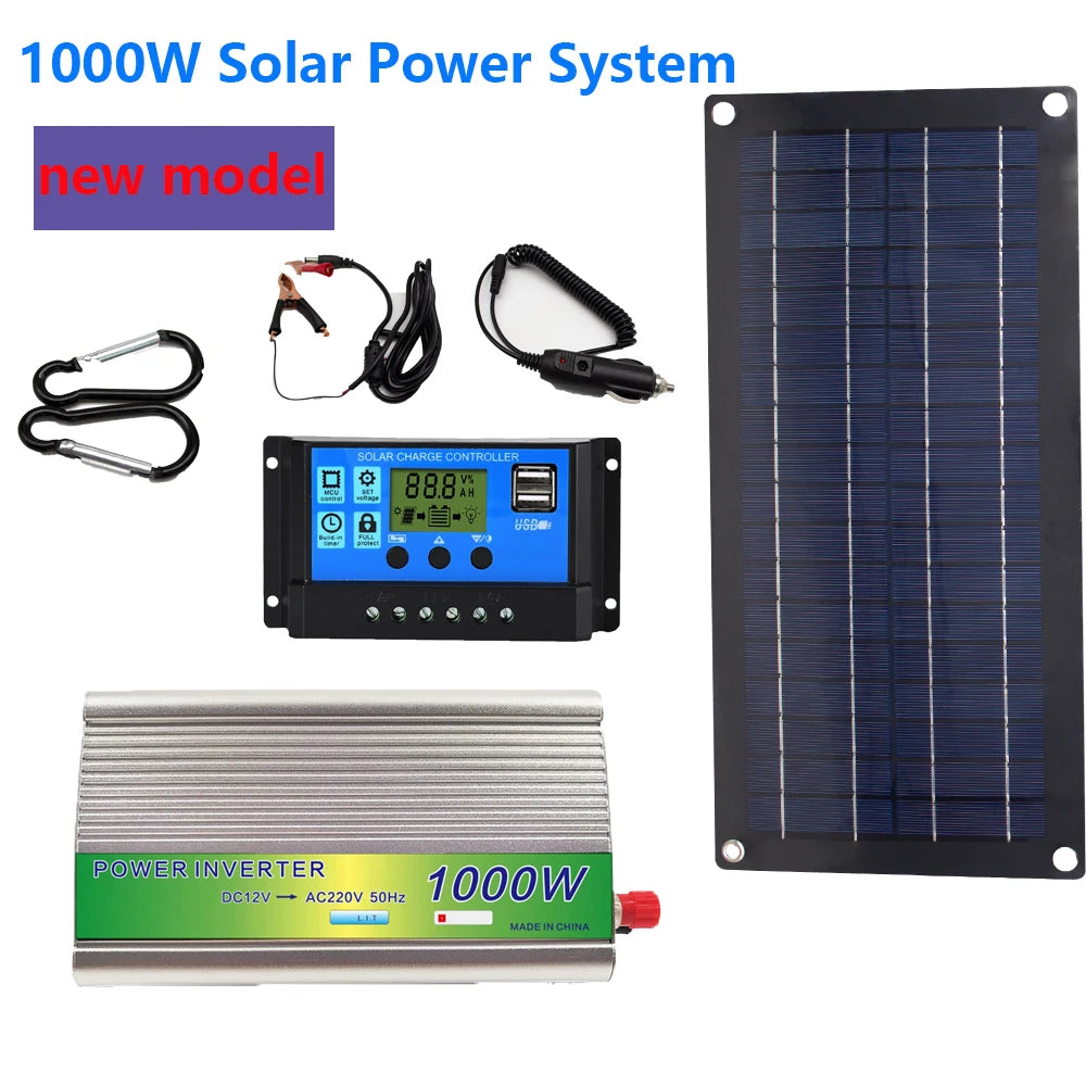 1000W Solar Power System Solar Panel Kit 12V to 220V Power Station 10A-60A Controller for Home Car Camping Backup Charger