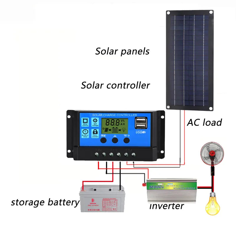 - 1000W Solar Power System Solar Panel Kit 12V to 220V Power Station 10A-60A Controller for Home Car Camping Backup Charger