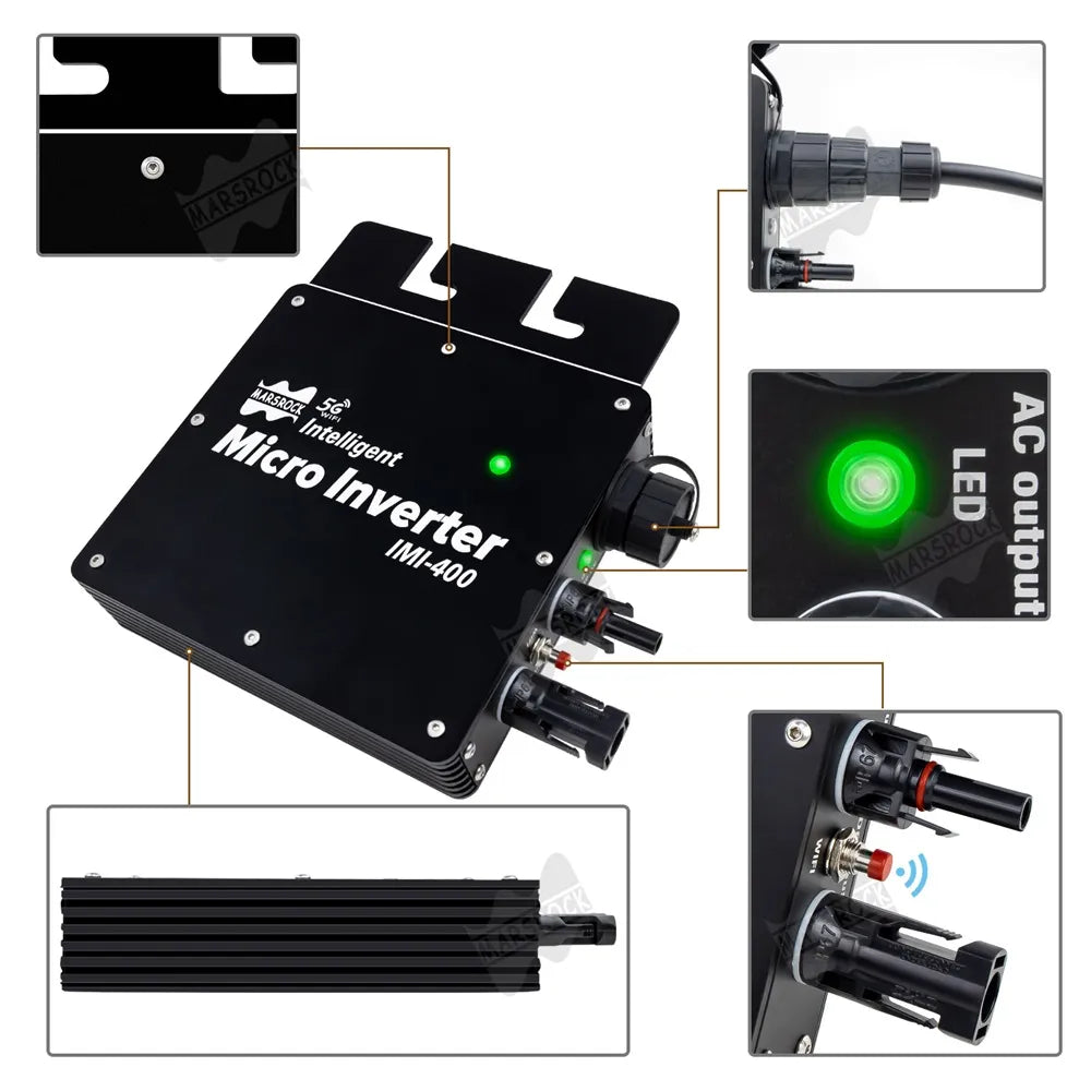 - 400W Smart WiFi 230VAC Grid Tie Micro Solar Inverter 22-50VDC Input For 60/72 Cells Solar Panel 250~450W MPPT IP65 Intelligent