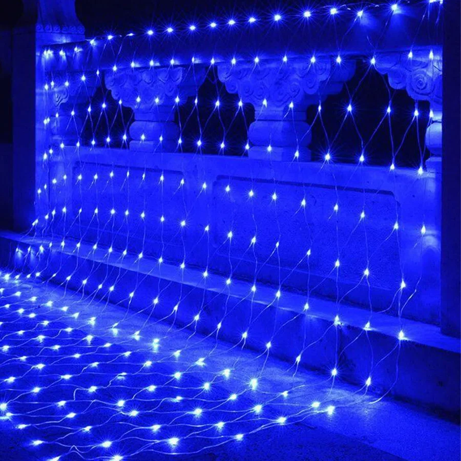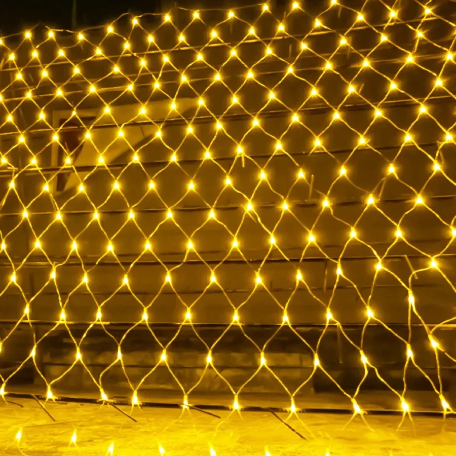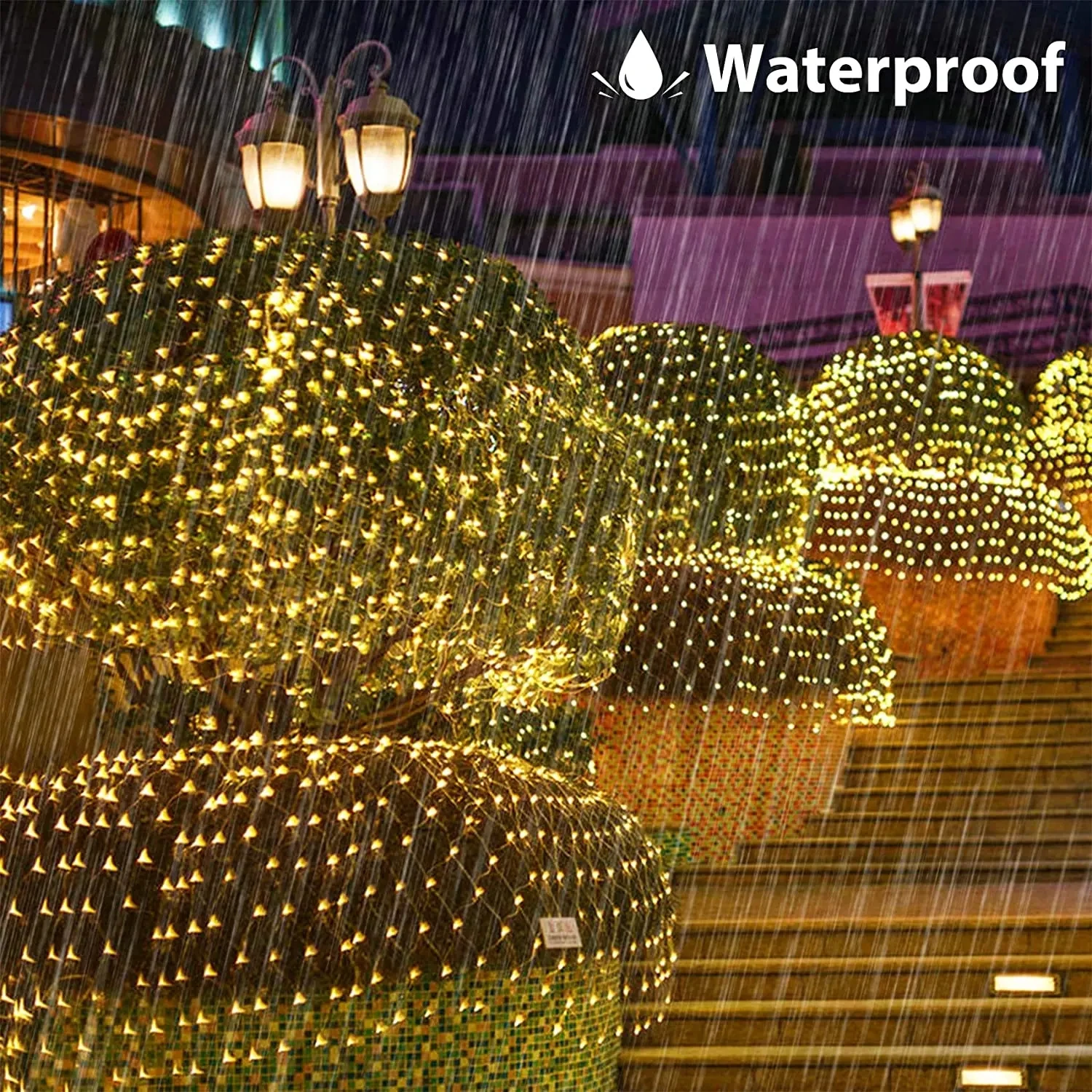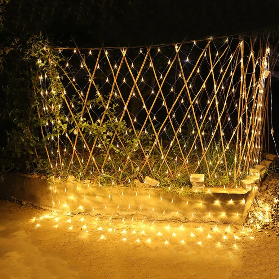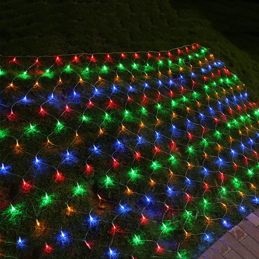 - 8 Modes Solar Power LED Net Curtain Lamp Mesh Fairy String Light Christmas New Year Decoration Outdoor Waterproof Street Garland