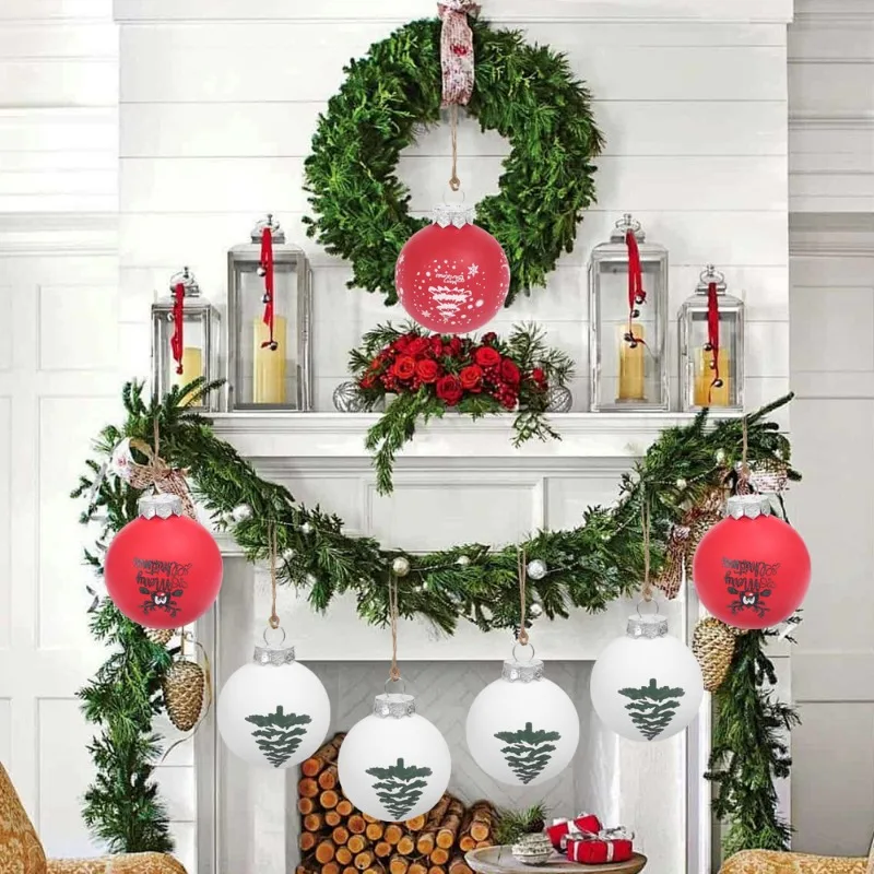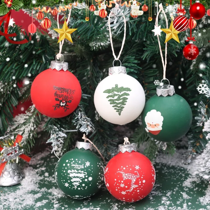 - 2/12PCS Christmas Balls Red Green Xmas Tree Ornaments Ball New Year Hanging Pendant Home Party Gift Holiday Decoration Supplies