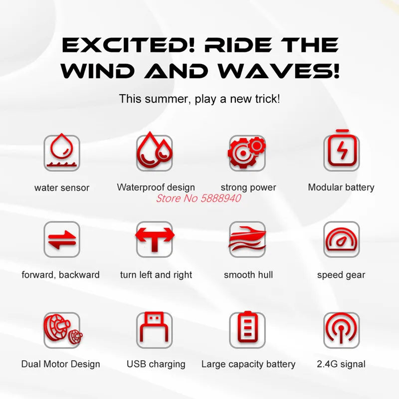 - Summer Water 35CM Big Remote Control Ship Boat 2.4G 100M 25KM/H Water Sensor Electric High Speed Racing Rowing RC Boat Kids Toy