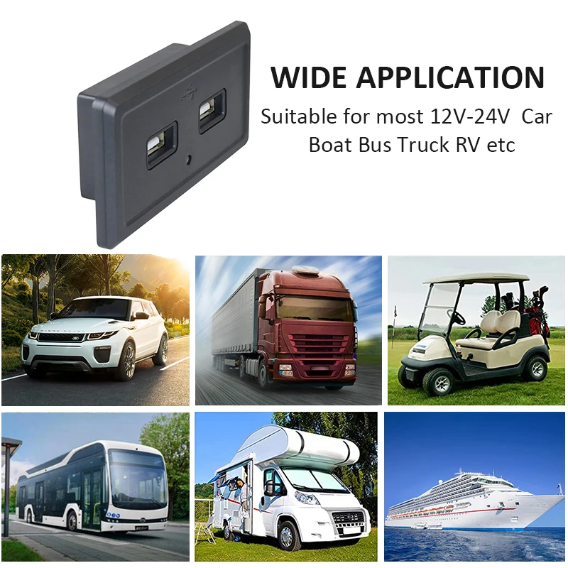 12V/24V USB Outlet Dual USB Outlet Socket Car Charger 3.1A Panel Flush Mount With LED Light for Car Bus ATV RV Boat Truck