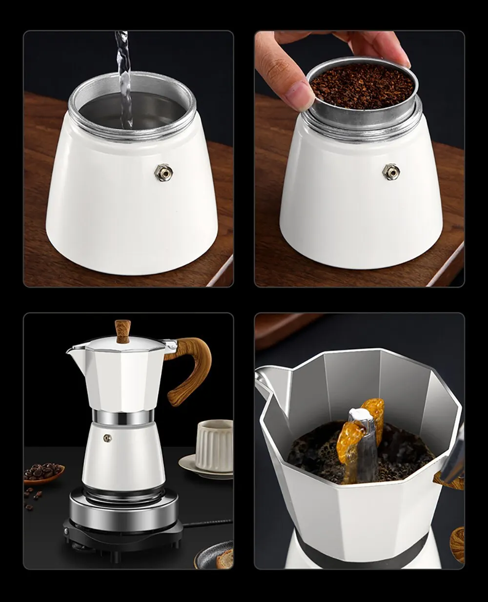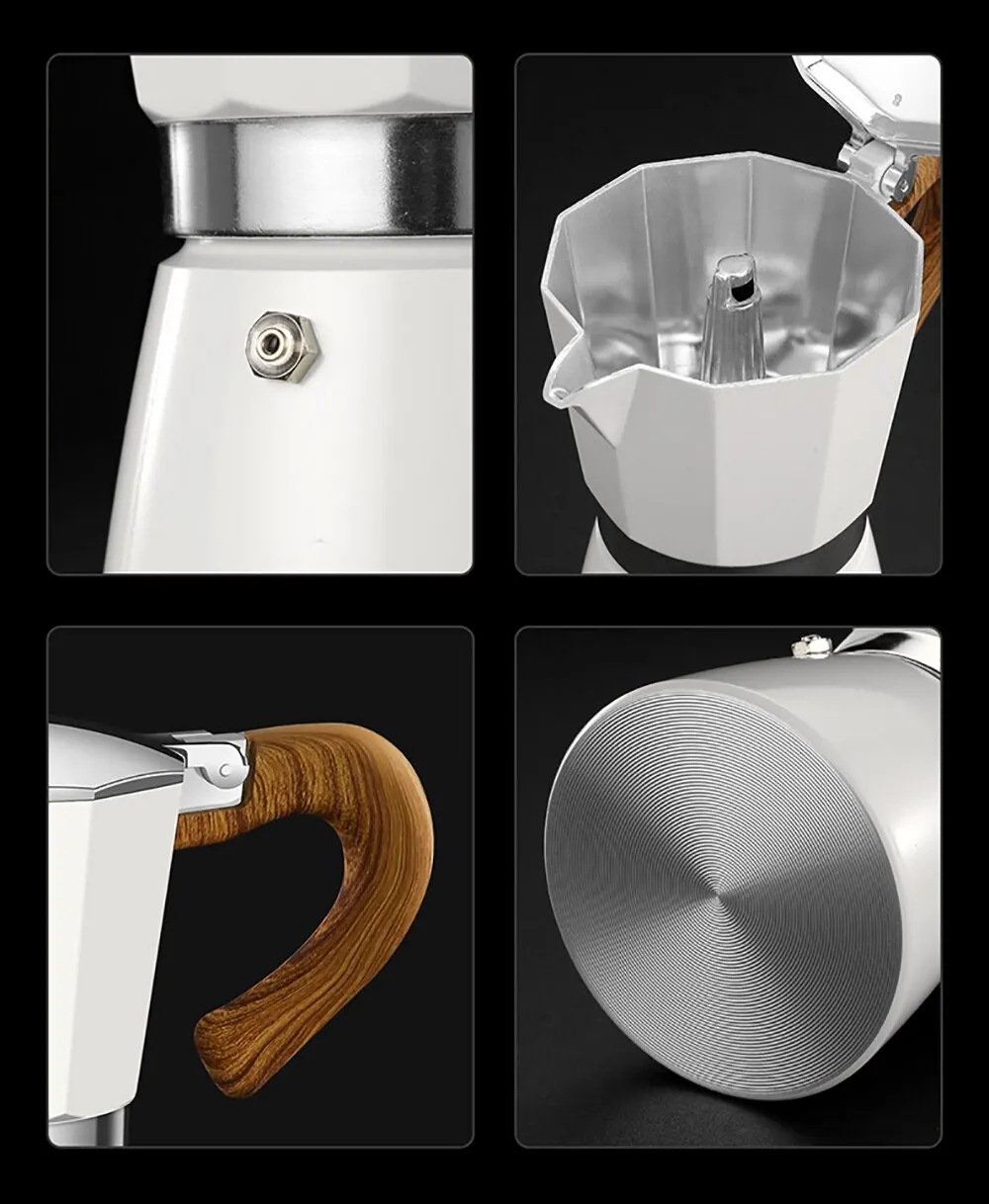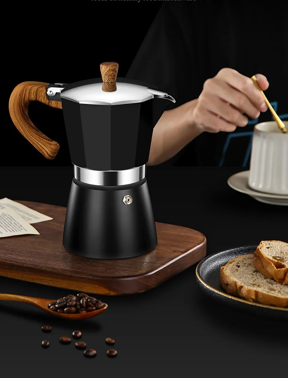 - 150ml/300ml Vintage Wooden Handle Electric Espresso Machine Moka Pot Classic Italian Portable Cafe Tool Kitchen Cafe