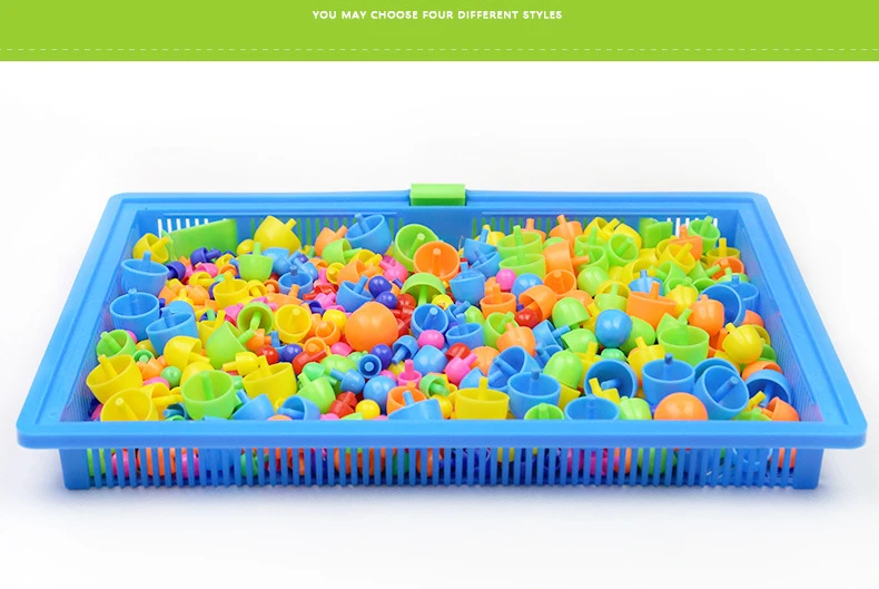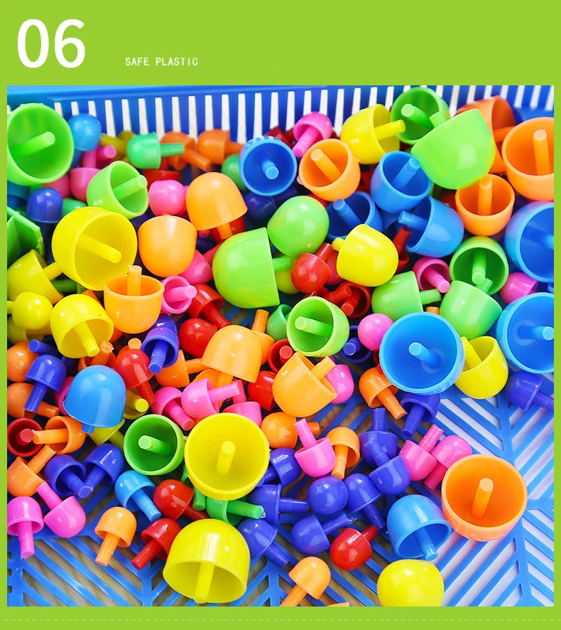 - 296pcs Mushroom Nail 3D Puzzle Blocks Kids Montessori Games Color Cognition Intellectual Educational Toys for Children Gifts