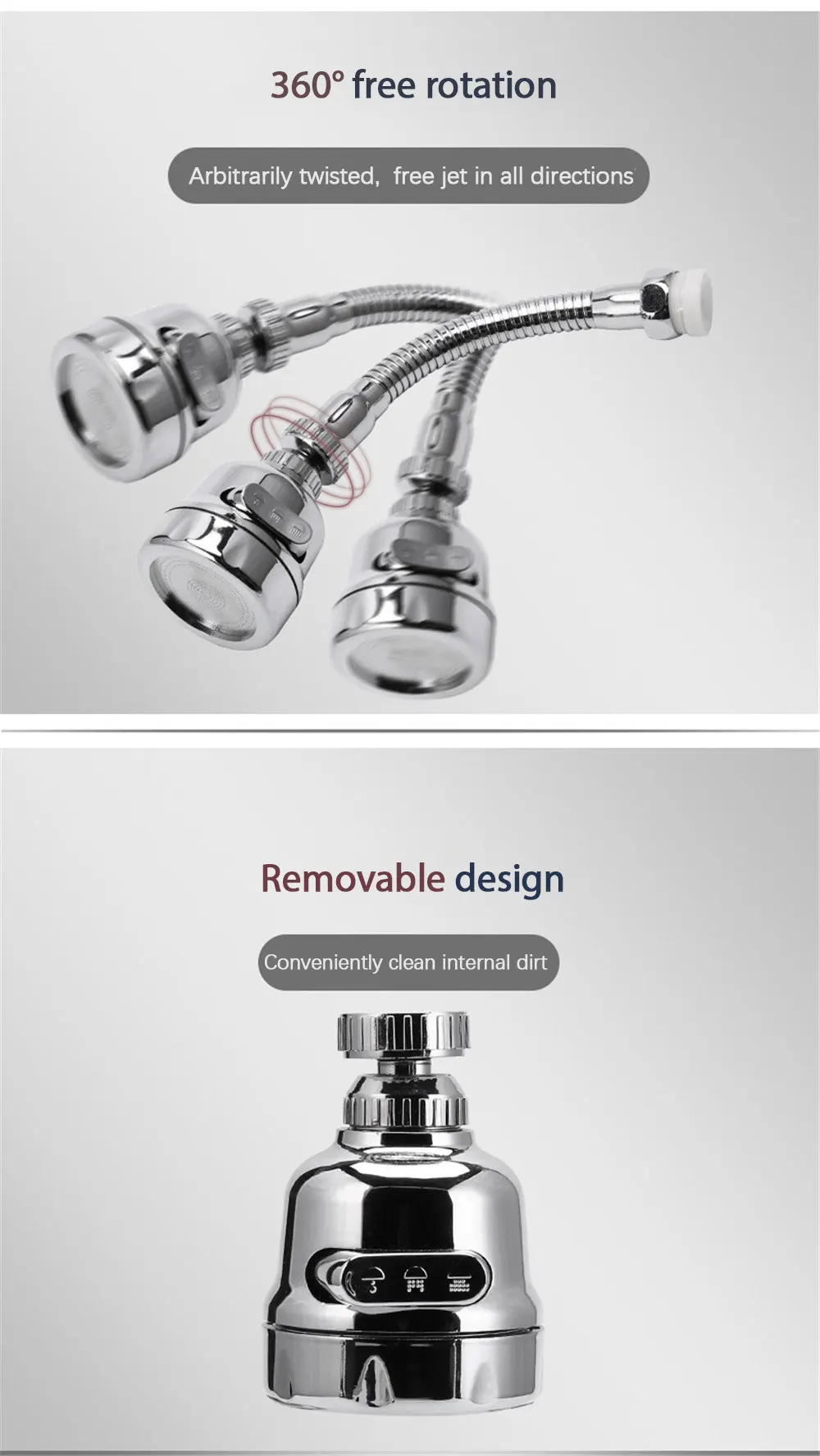 - Faucet Adapter Aerator 3 Modes 360 Rotatable Bubbler High Pressure Faucet Filter Extender Water Saving Tap Nozzle Kitchen Gadget