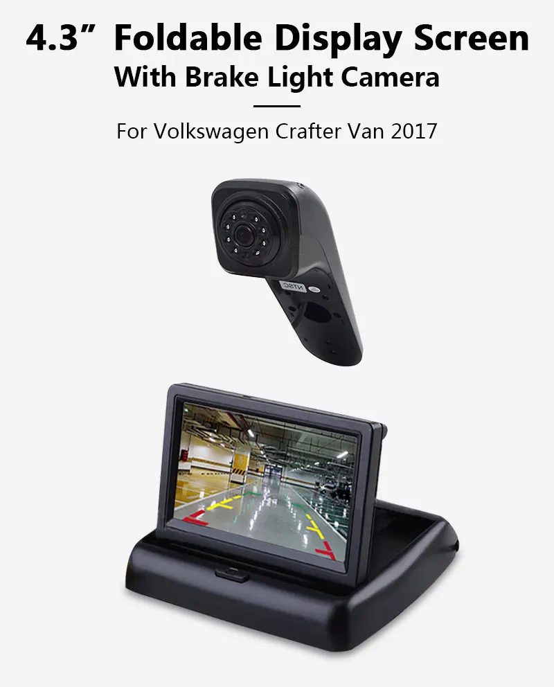 - HD Car Brake Light Rear View Camera For 2017 Volkswagen Crafter Van IR Led Light 12V With 4.3 Inch Car Display Screen
