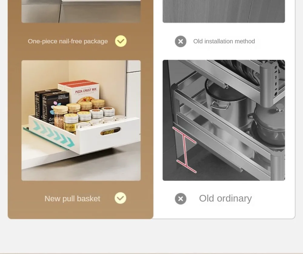 - In-Cabinet Drawers Shelf Kitchen Storage Pull Out Bottles Jars Basket Layered Spice Dish Plate Under Sink Boxes Home Organizater