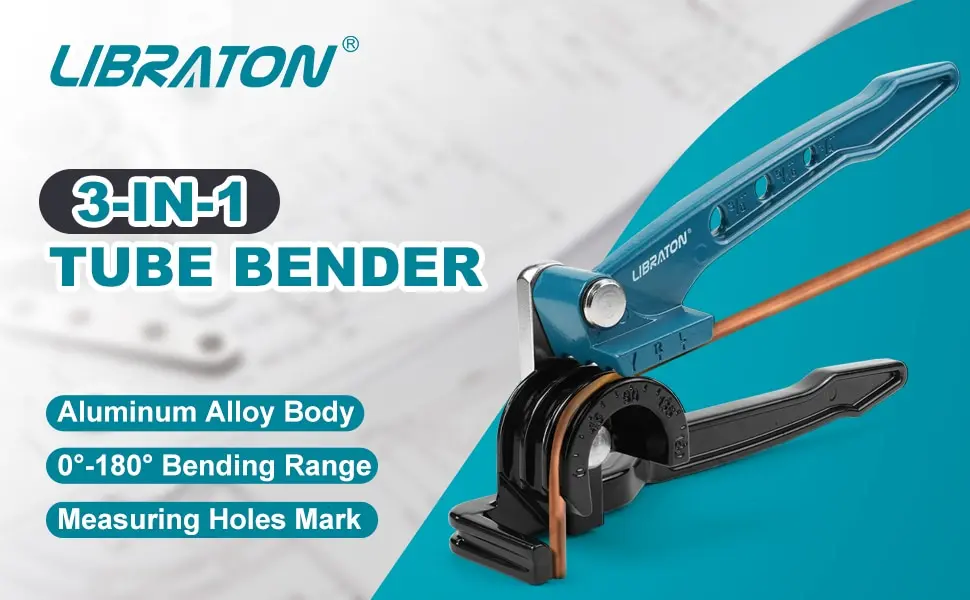 Libraton Copper Tube Bender, Tubing Bender 180°, Tube Bender 1/4", 5/16", 3/8", 3in1 Copper Pipe Bender, Copper Tubing Bender
