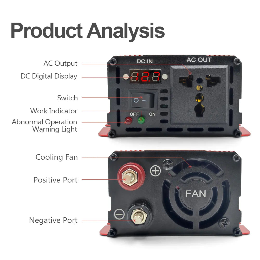 - RDDSPON Pure Sine Wave Inverter DC 12V To AC 110V 220V 50Hz 1000W 1600W 2200W 3000W Transformer Power Converter Solar Inverters