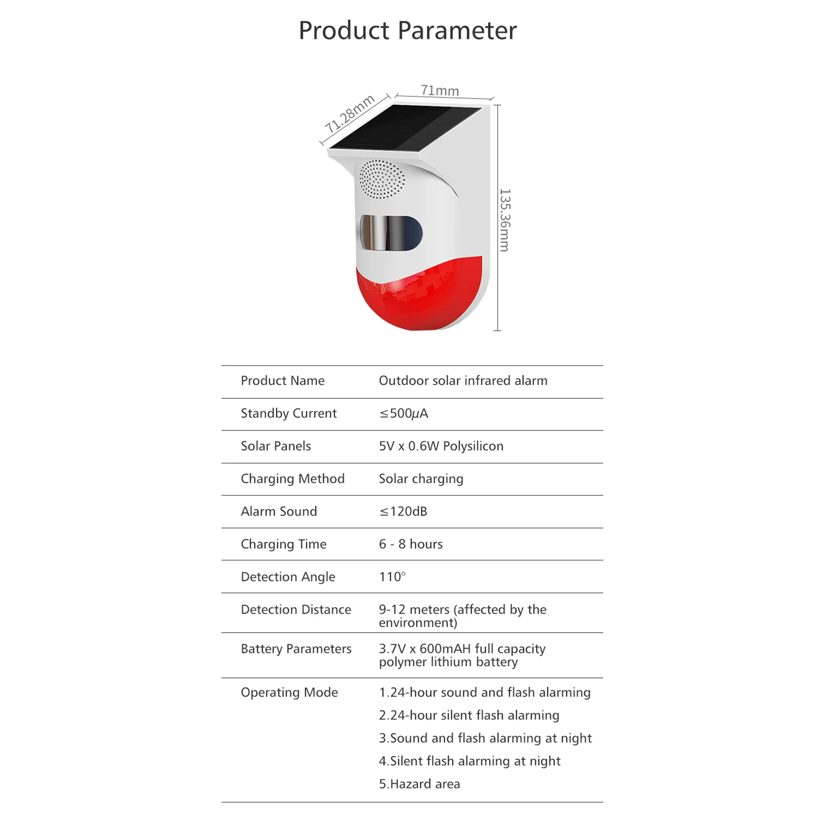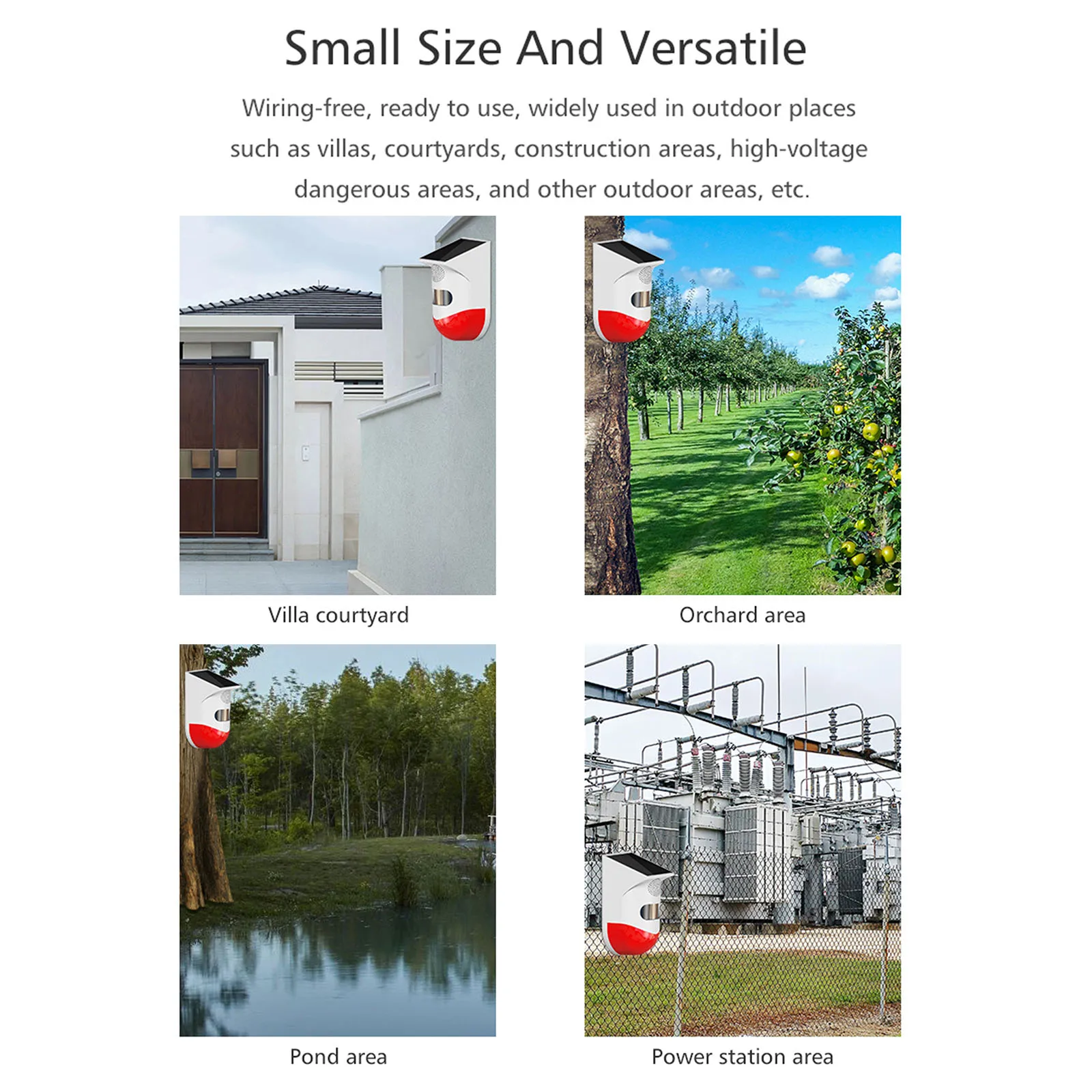 - Solar Powered Wireless Independent Infrared Motion Sensor Detector Burglar Alarm Strobe Siren 120dB Alarm Waterproof PIR Sensor