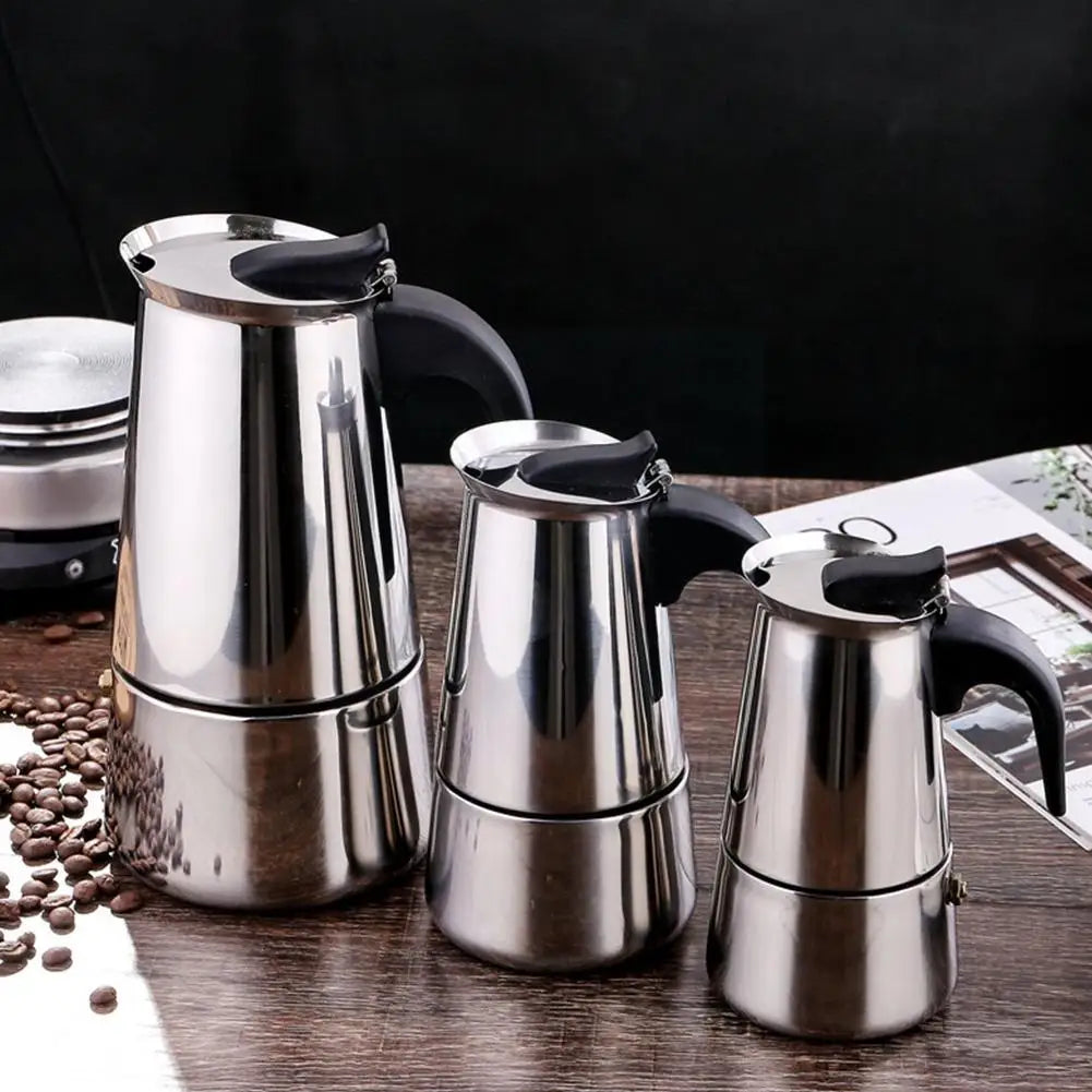 - Stainless Steel Coffee Pot Italian Moka Pot Espresso Coffee Maker Pot Cafe Percolator Maker Coffee Tools For Latte Stovetop K2B3