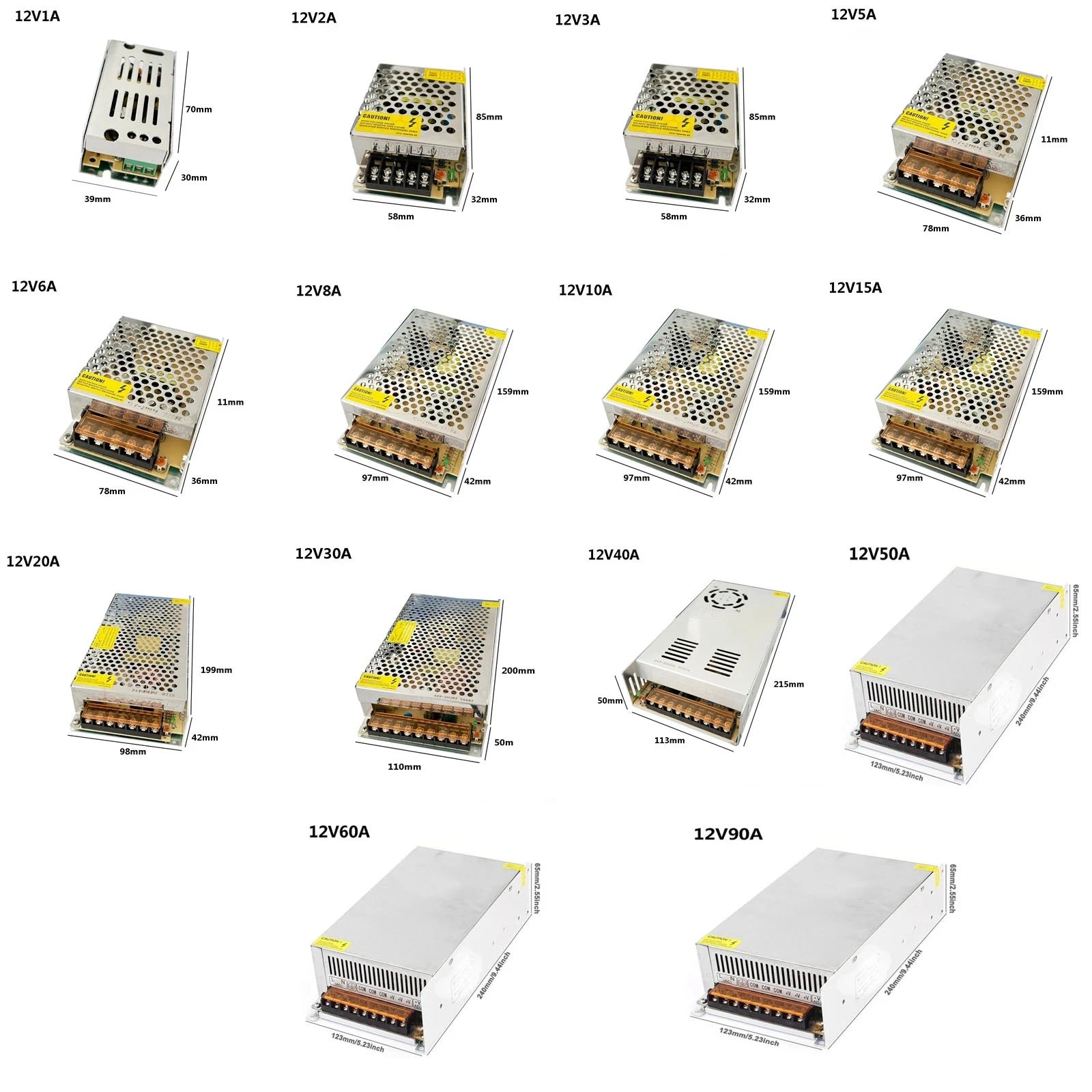 DC12V / 2A 3A 5A 8A 10A 12.5A 15A 20A 30A 40A 50A 60A ;