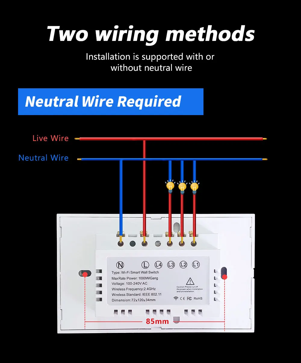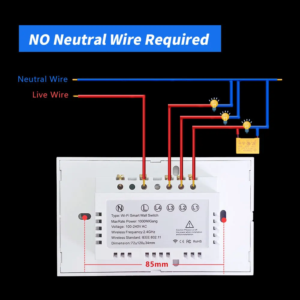Wifi Tuya Smart Wall Touch Switch No Neutral Wire Required Smart Life Wireless Remote LED Light Switch Support Alexa Google Home